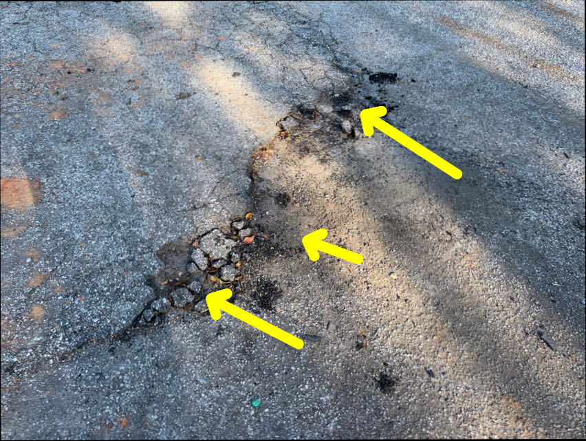 While accessibility barriers may be noted on the inspection report, this inspection is not a full accessibility inspection. An ADA compliance inspection is recommended to ensure all accessibility concerns are addressed. • Parking area/thoroughfare material was bituminous asphalt • Parking area material was concrete • Landscape drainage was public storm sewers • Gravel landscaping • Grass landscaping • Shrubs observed in landscaping 4.1. Minor settlement or “hairline” cracks in drives, walks or even foundations are normal to properties of any age. They should, however, be monitored for expansion and sealed as necessary. 4.2. Deterioration observed in parking area/thoroughfare. 4.3. Potholes observed in parking area and/or thoroughfare. 4.4. Landscaping was in poor condition at one or more areas and in need of maintenance. |