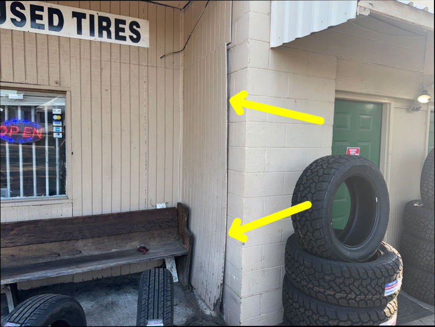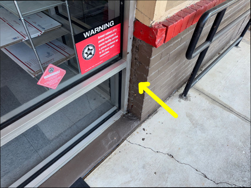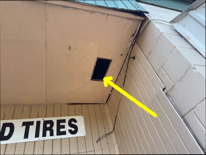 • Metal flashing 1.1. Past siding repairs observed at one or more areas on building exterior. 1.2. Minor cracking in brick veneer noted. 1.3. Deteriorated paint observed at trim in front of first suite (post office) 1.4. Missing caulk observed in wood siding at front 1.5. Loose siding observed at Suite 150 1.6. Wooden cover observed over what appears to be an opening in siding at rear left. 1.7. Water damage observed at wood siding on rear right side 1.8. Gap observed in metal soffit at rear left. This condition should be corrected to reduce potential for pest intrusion. 1.9. Unpainted deteriorated trim, observed at edge of roofline right side over Suite 150 1.10. Siding gaps observed at left side. This area should be sealed to reduce potential for water and pest intrusion. 1.11. Hole observed in siding at left side. This area should be sealed to reduce potential for water and pest intrusion. |