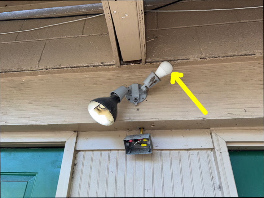 Building lighting was operated by switches 5.1. One or more of the exterior light fixtures was not operational when tested. Our inspection is limited to operating on the normal setting and using standard controls. 5.2. Damaged wired, low-voltage exterior LED light fixtures observed in front of Suite 130 |