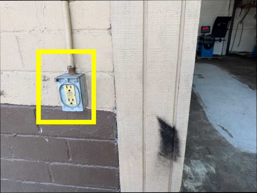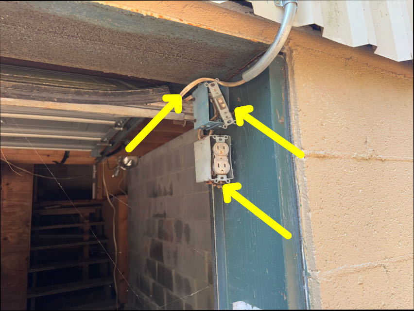 Exterior outlets were tested when visible and accessible. Any outlets not visible or accessible are excluded from this inspection. 6.1. Missing bulbs observed in left side garage/basement area ceiling 6.2. Non-functioning light pictures observed left side entrance to garage/basement area 6.3. Non-functioning light fixture observed in one more exterior areas 6.4. Missing/damaged weatherproof cover(s) noted at one or more outlets at the exterior of the home. Have the covers installed or repaired as needed. See photographs for specific locations. 6.5. Open junction box observed at the exterior of the building. Whenever an electric wire is cut and reconnected, the 'splice' should be encased in a covered junction box to prevent shocks and separation of the splice. 6.6. Missing cover plates and exposed wiring, observed at left side rear garage. This is a safety hazard and should be corrected. 6.7. Expose wiring observed and left side garage/workspace. All exposed wiring should be concealed in a conduit for safety. 6.8. Missing cover plates observed at one more areas. This condition should be corrected for safety. |