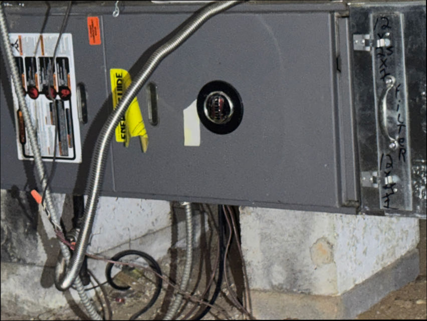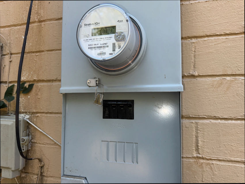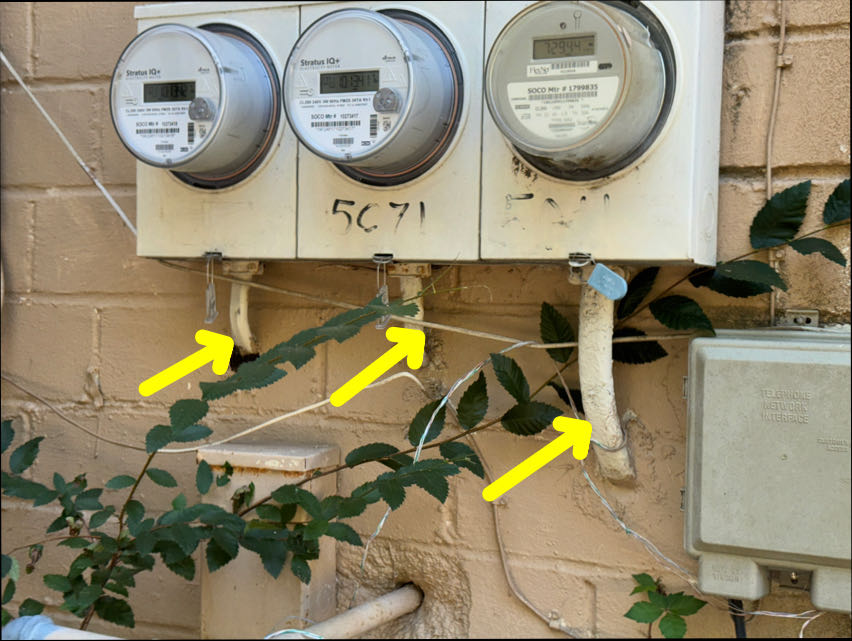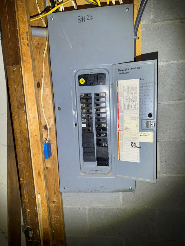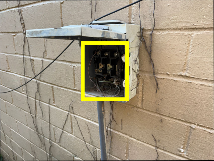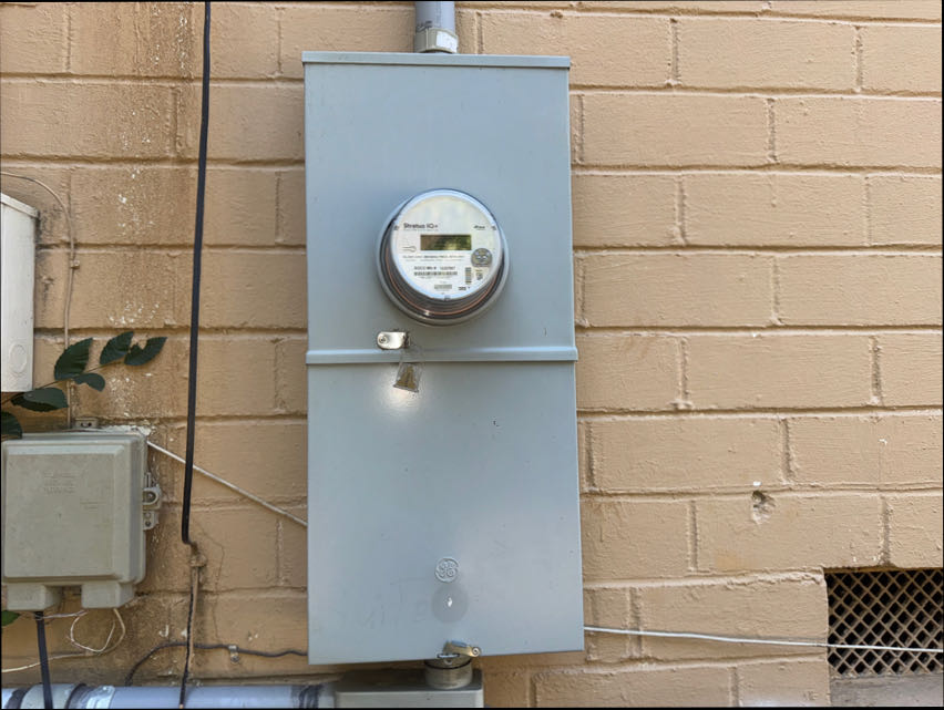 This is a multi unit building. Exterior electric meters and disconnects are inspected when properly labeled.