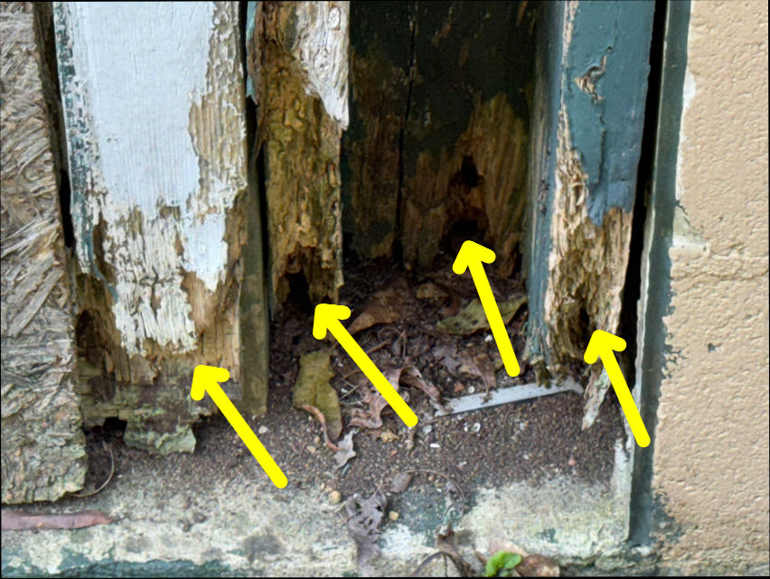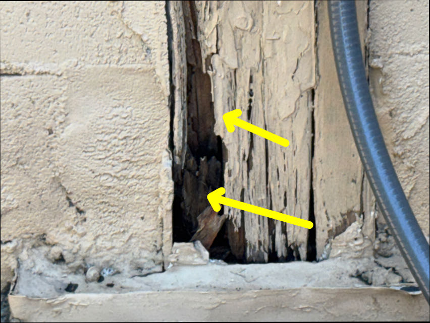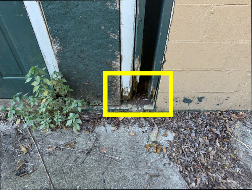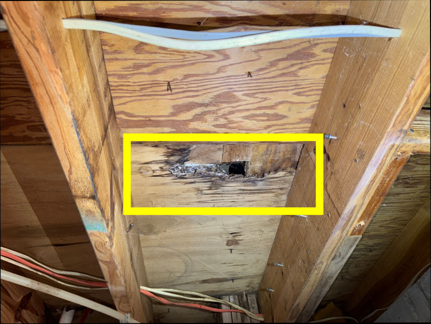 6.1. The CCPIA Commercial Standards of Practice does not include identification of damage from or the presence of- wood destroying insects (WDI). Although I may comment on obvious signs, as a courtesy, a WDI inspection would require the services of a qualified specialist (typically a pest control contractor). 6.2. Visible damage or possible presence of wood destroying insects was observed at the time of inspection. See photographs for locations. |