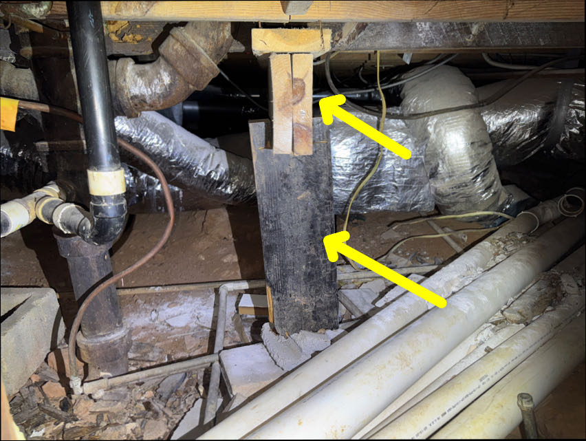 | Crawl Space Conditions | Item: 6 | 6.8. Improper support posts were observed in the crawlspace. |