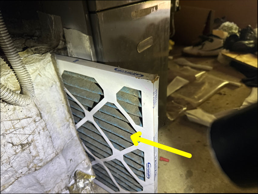 The filter(s) for the HVAC units are located at the sides or in the lower portions of the furnace(s). See photographs for locations, sizes and details. 9.1. There it no way to determine the last time the filters were changed, and they were dirty at the time of inspection. It is suggested to install new filters. 9.2. The filter cover is missing at the furnace in one or more locations. Have the cover installed to prevent from drawing unfiltered air through the furnace. |