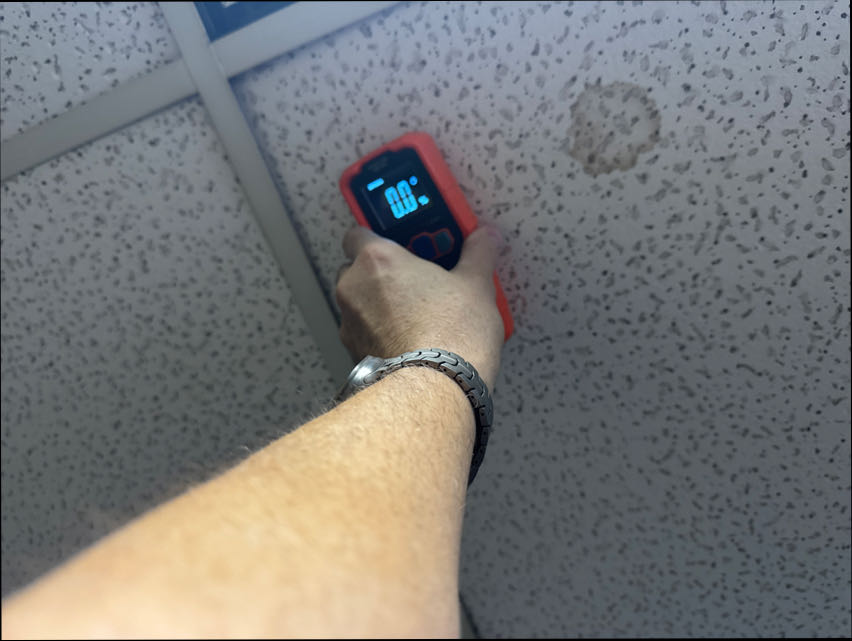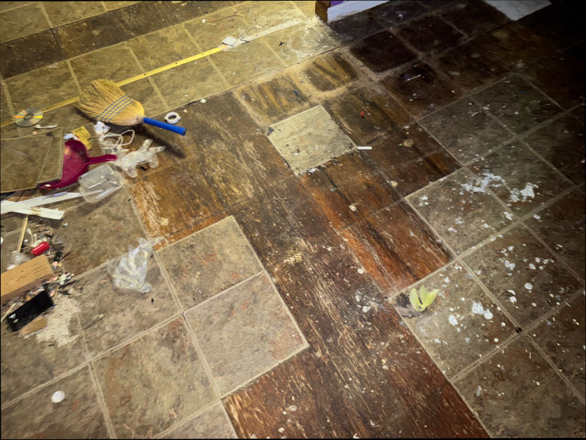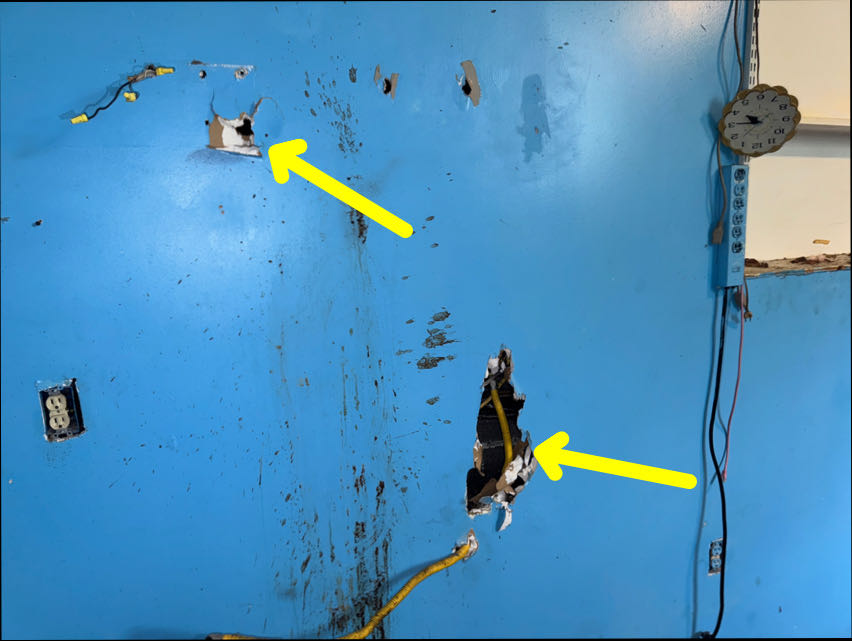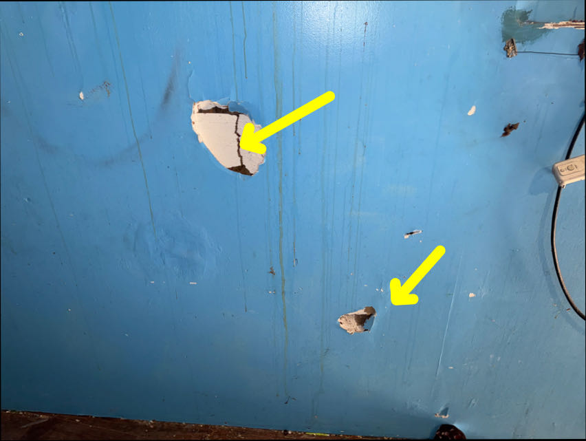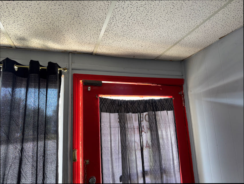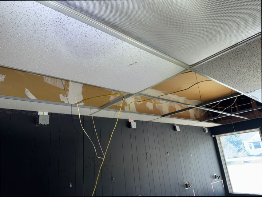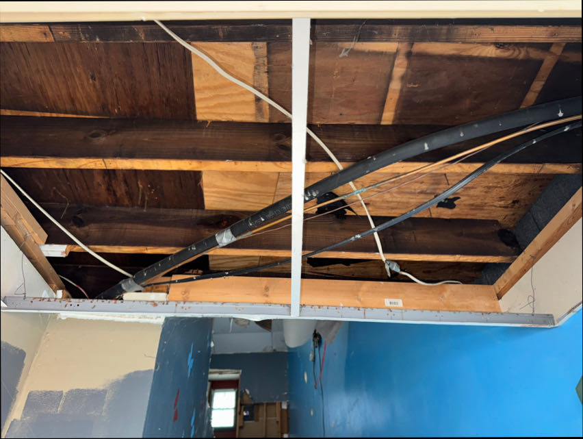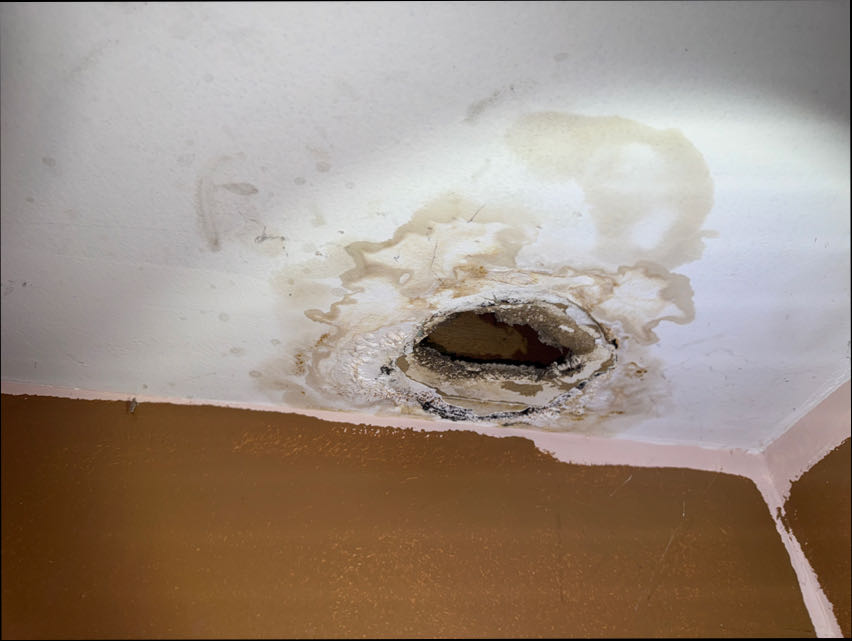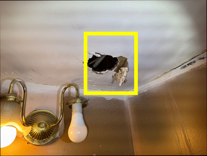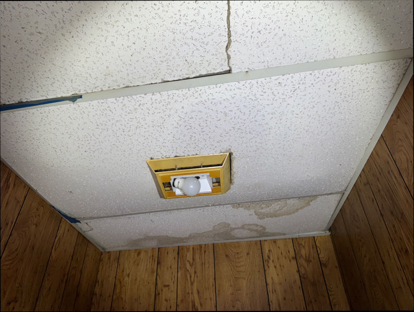 • Some amount of mold is present in all buildings. Mold may not always be visible and may not be actively growing within the property. Mold assessment and testing are recommended any time there is visible mold or if there are health concerns for the present or future occupants. 8.1. There was significant damage and missing areas of covering observed in walls, floors, and ceilings of Suite 160. Photographs in this section or for example, examples. This area will likely need to be fully renovated. 8.2. Active wasp nest observed in Suite 160 front room |