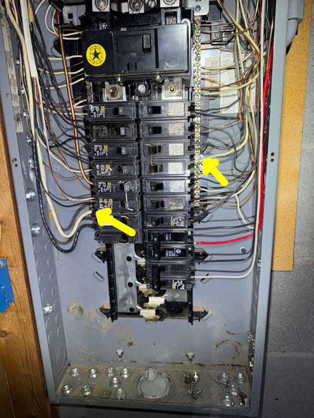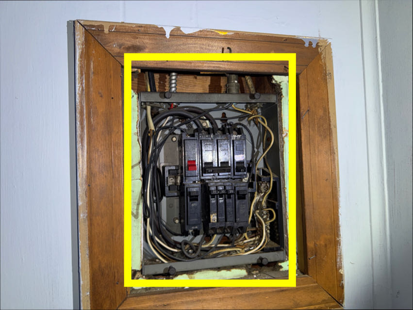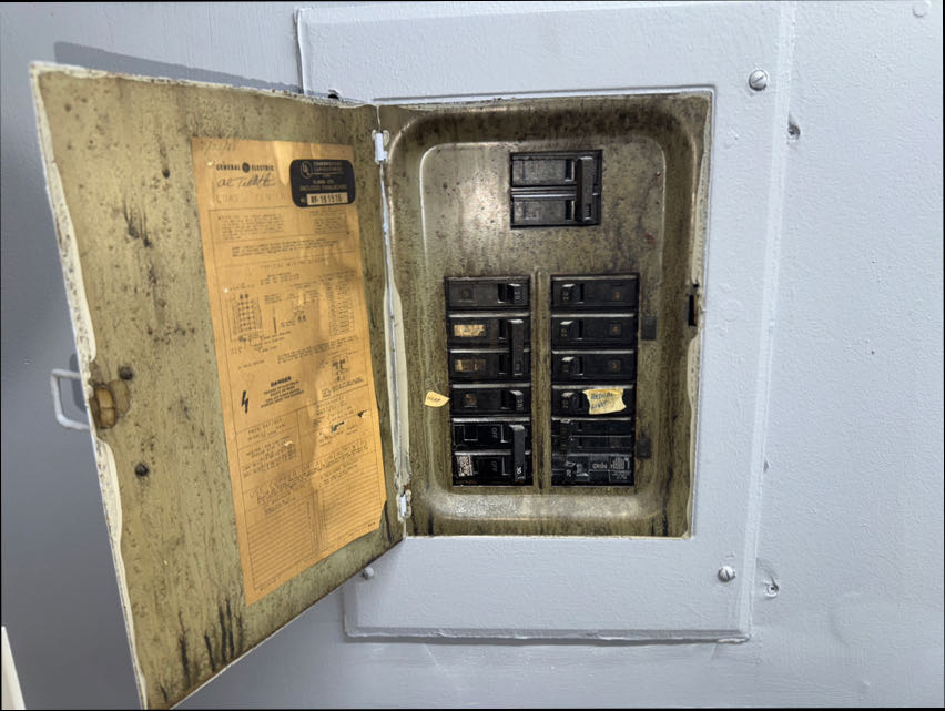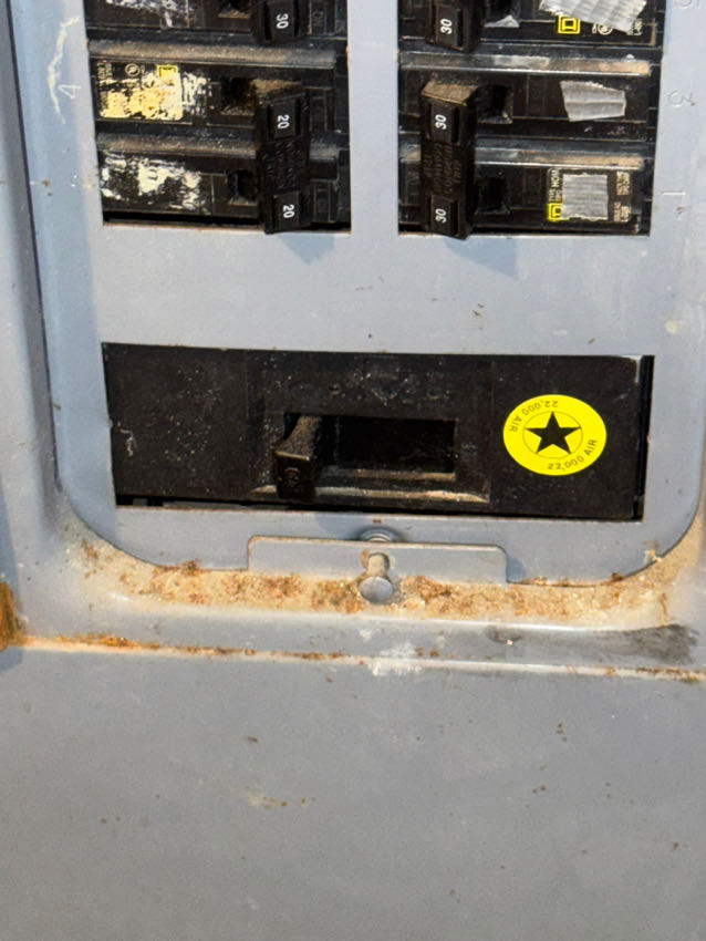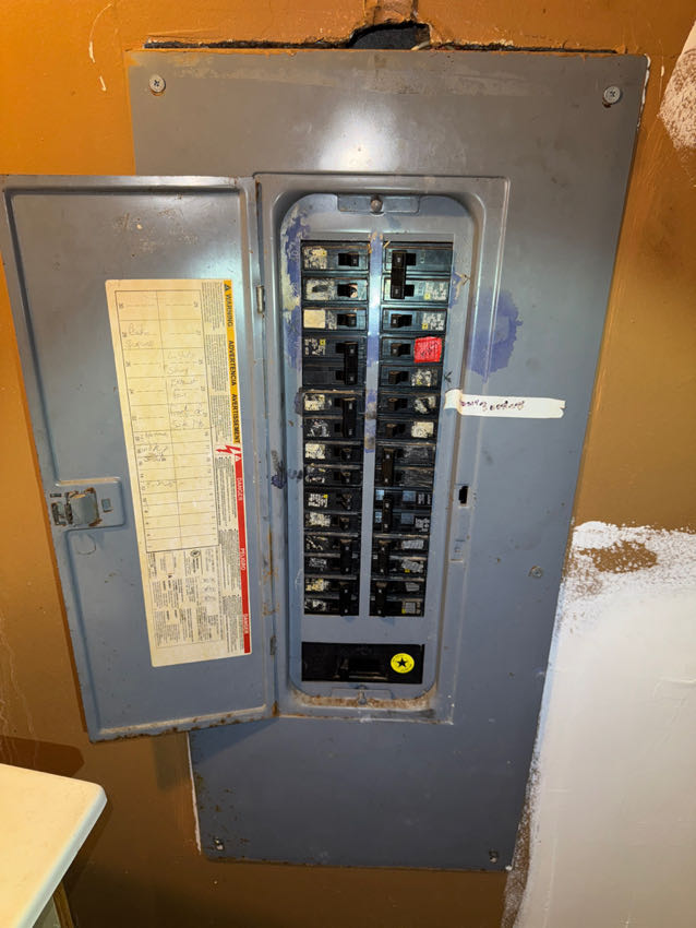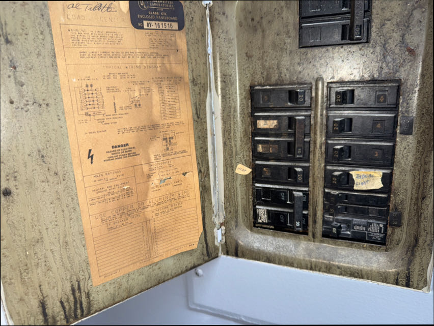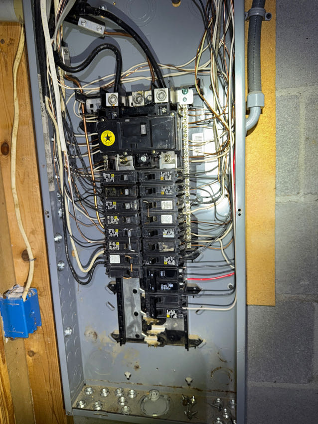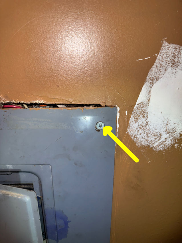 • Missing screws noted at panel cover. Have replaced by licensed electrical contractor • Different brand names on panel and breakers. Improper breaker-panel matching can cause arcing and overheating in the panel as well a potentially void the panels warranty. We recommend a licensed electrician install new breakers in panel. |