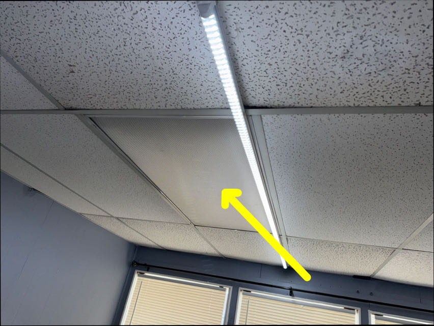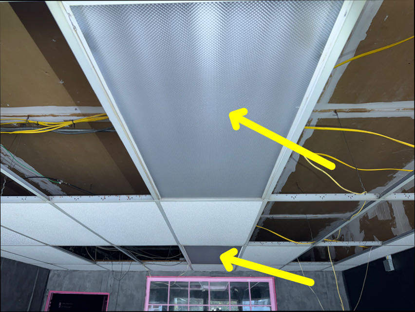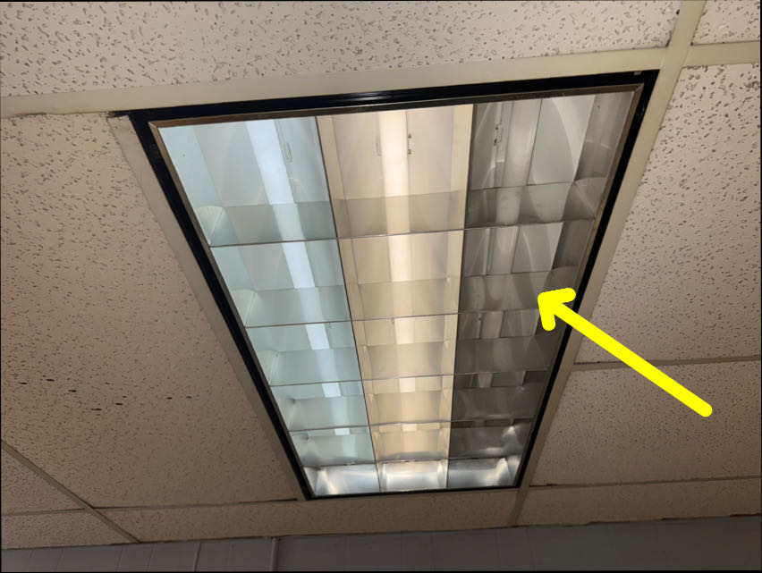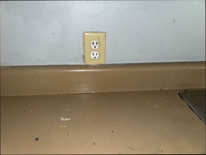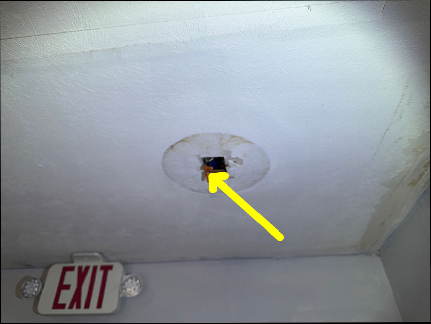 Materials: Conduit • BX 7.1. One or more receptacles observed not energized. Recommend evaluation and correction by licensed electrical contractor. 7.2. One or more light fixtures was not operating at time of inspection. See photographs for locations. 7.3. Missing protective covers, observed at fluorescent light fixtures in one or more areas 7.4. Open Ground outlet observed at one or more location locations. 7.5. Light fixtures were not operating in Suite 160. See photographs for example examples 7.6. Open wiring observed at one or more locations on building interior. Have repaired by a licensed electrical contractor for safety. 7.7. Missing or damaged outlet covers observed at one or more locations on the interior. Have repaired by a licensed electrical contractor for safety. 7.8. Missing or damaged switch plate covers observed at one or more locations on the interior. Have repaired by a licensed electrical contractor for safety. 7.9. Non- GFCI A special device that is intended for the protection of personnel by de-energizing a circuit, capable of opening the circuit when even a small amount of current is flowing through the grounding system. outlet observed in one or more restrooms. GFCI outlets are recommended in all restrooms. 7.10. One or more miswired outlets observed. 7.11. No GFCI outlets observed in one or more kitchen areas 7.12. Unmounted light switch with missing cover plate observed at entrance to Suite 160 |