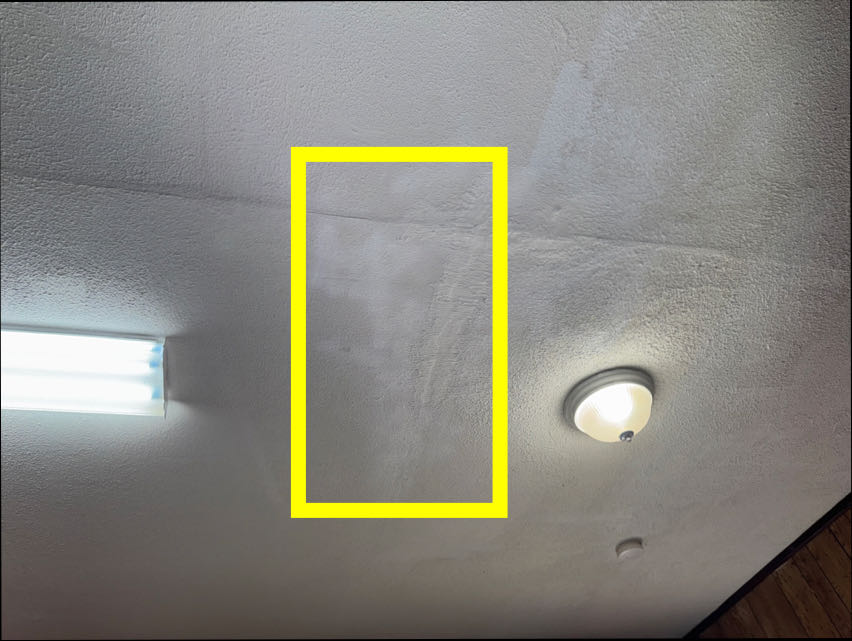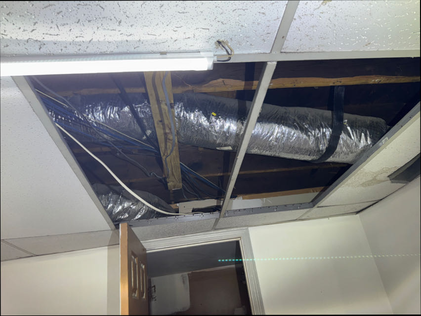 4.2. Moisture stains observed at one or more areas on interior ceiling. The areas were dry at the time of inspection and no leaking was noted. See photographs for locations and details. 4.3. Damaged drywall observed. Drywall should be professionally repaired as needed. See photographs for examples and locations. 4.4. Missing ceiling tiles observed in Suite 130 4.5. Missing ceiling tiles at rear Suite 150 right room 4.6. Damage area of ceiling observed in Suite 150 bathroom 4.7. Missing drywall observed at Suite 160 entryway 4.8. Missing ceiling tiles observed in Suite 160 front room 4.9. Damage to ceiling tiles observed in Suite 160 |