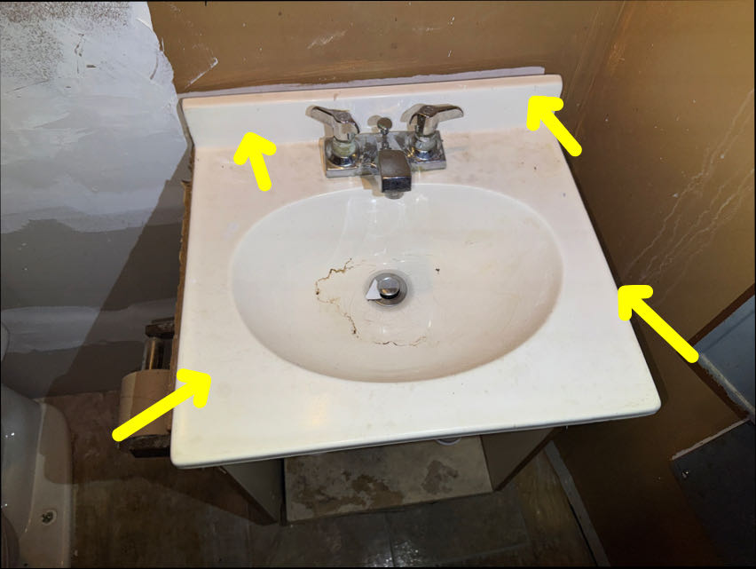 4.1. Missing cover/door observed at Suite 150 bathroom cabinet 4.2. Unsecured countertop observed at Suite 150 bathroom 4.3. Cracked mirror observed in Suite 160 front bathroom. This is a safety hazard. It should be corrected |