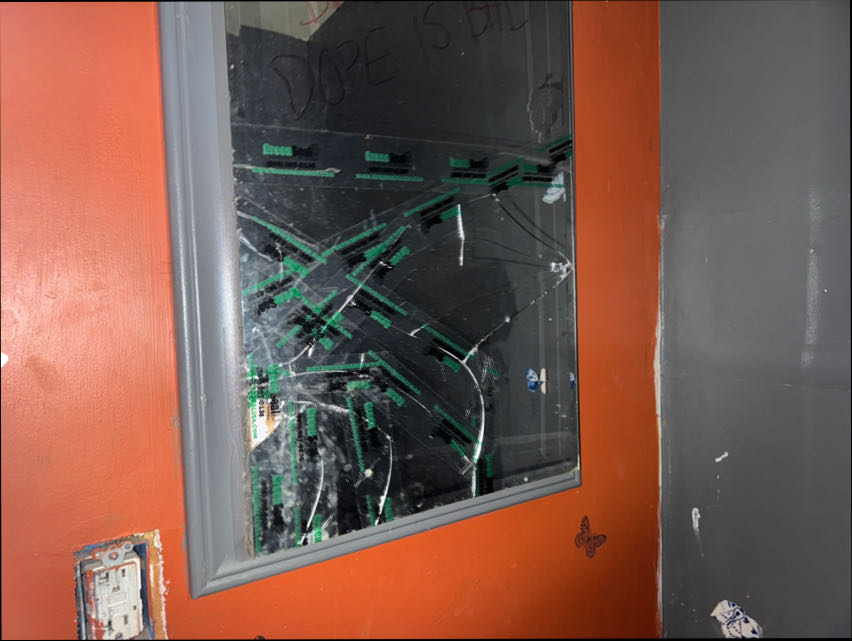 1.2. One or more misaligned doors noted on interior. It is not uncommon for interior doors to not latch properly or stick on the frame. Typically, minor adjustments are all that are needed to correct the situation. 1.3. Obviously fogged window(s) observed at one or more locations on interior. This is an indication of thermal seal failure which will reduce visibility and the insulating capability of this window. To restore visibility and regain the insulating capability, replacement of this window pane is required. 1.4. Missing doors observed in Suite 130 1.5. Damaged door knob at rear left door in Suite 140 front room. The door could not be open. Area was not inspected. |