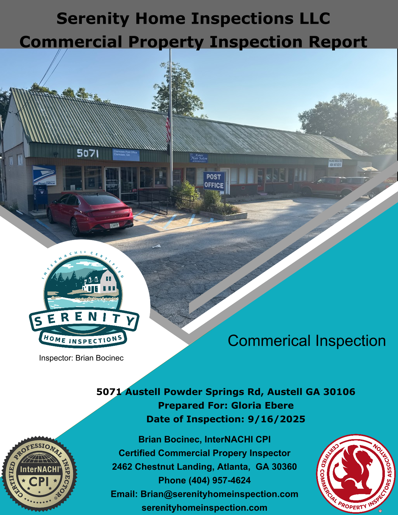 This firm endeavors to perform all inspections in substantial compliance with the International Standards of Practice for Inspecting Commercial Properties (www.nachi.org/comsop). The scope of the inspection is outlined in the Inspection Agreement, agreed to and signed by the Client. Our inspectors inspect the readily accessible and installed components and systems of a property as follows: This report contains observations of those systems and components that are, in the professional opinion of the inspector authoring this report, significantly deficient in the areas of safety or function. When systems or components designated for inspection in the Standards are present but are not inspected, the reason the item was not inspected may be reported as well.